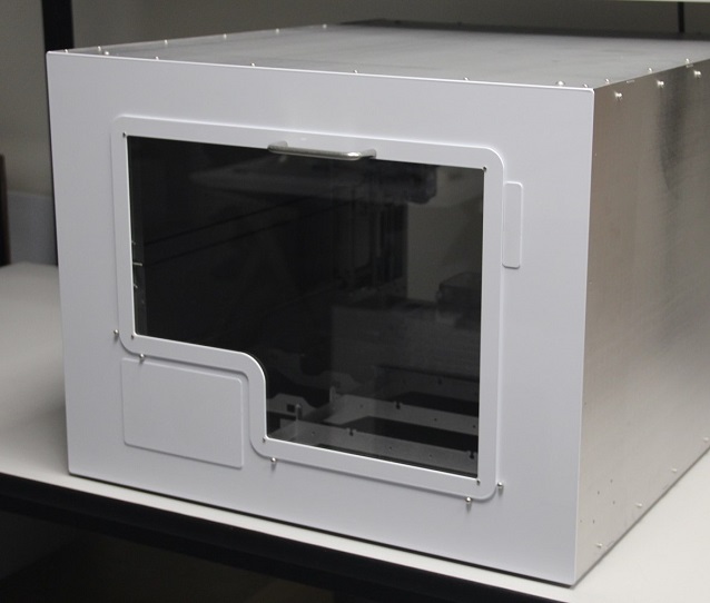 The boxes are mounted on racks with built-in mechanisms for transferring plates between devices, allowing 20+ boxes to operate in one room.